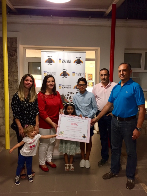 Hacen entrega la fallera mayor infantil Paula Dominguez Alonso, y presidente infantil Cristian Ruiz Alonso, junto con la fallera mayor Mari Carmen Hernández Rodriguez y el presidente Julian Romero López.
